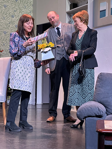 Judy Garrett encapsulates the Jewish mother from hell with her fixed ideas and constant put-downs of Ruth and just about anyone who doesn’t fit in with her ideals. Gerald’s brother David, a widowed taxi driver, played by Andy Gill, adds even more pathos to the action as he tries to keep everyone happy — not an easy task. Sali Pike is an actress with a very expressive face and manner, and she perfects the role of David’s daughter, who drops a bombshell on the evening. Finally, Michael Mackey as the watch repairer Mr Blackburn, who discovered the timepiece’s provenance, and Sam Moulton as the collector both put in convincing performances.