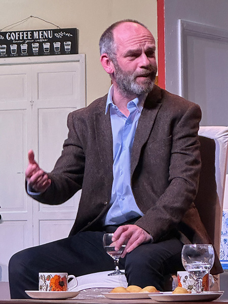 David Roth, Gerald’s brother, appears the more solid, down-to-earth and pragmatic of the brothers. Andy Gill does a good job at highlighting the younger brother’s emotional turmoil, recently bereaved following the death of his wife, and his growing resentment at feeling overlooked by his father. The growing rift between the brothers is played well culminating in a physical fight that is believable in its clumsiness.