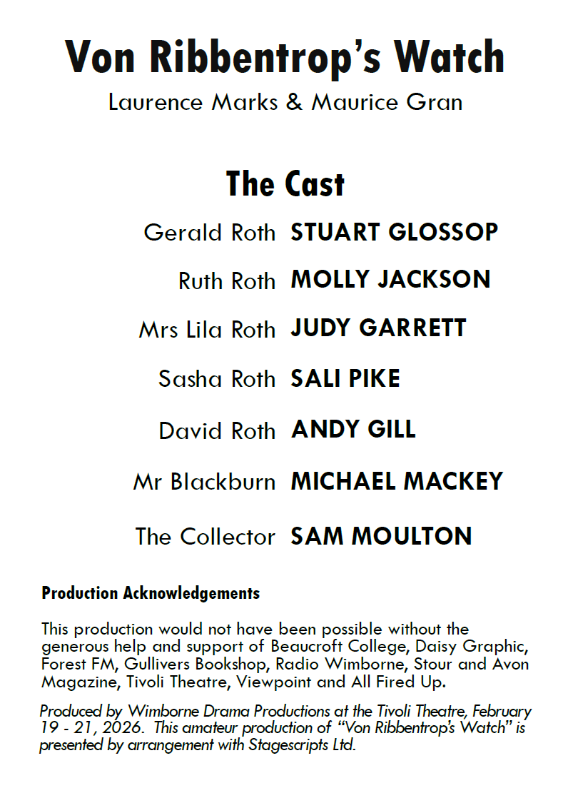 Writers Laurence Marks and Maurice Gran are best known for their celebrated television comedies, including Birds of a Feather and Goodnight Sweetheart. In Von Ribbentrop’s Watch, however, they turn to domestic drama, inspired by Marks’ own experience of buying a vintage watch and subsequently discovering it once belonged to convicted Nazi war criminal Joachim Von Ribbentrop – Foreign Minister of Nazi Germany who was executed following the Nuremberg Trials.