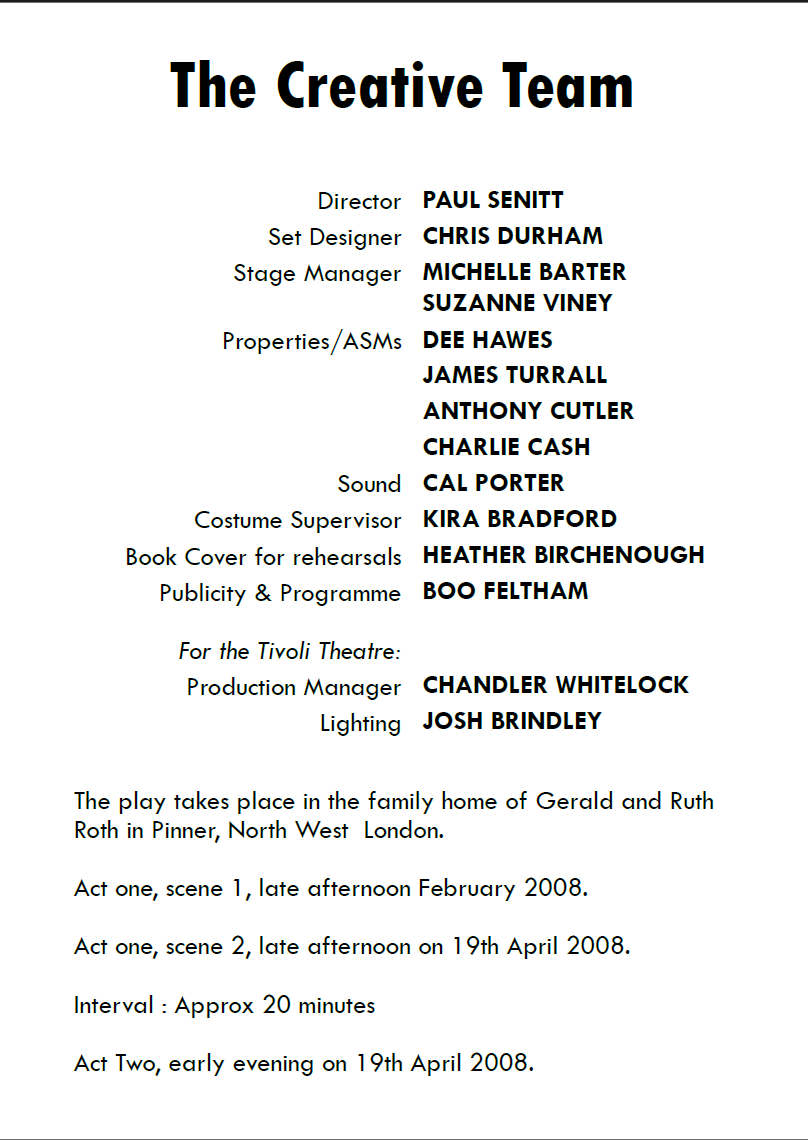 This is a challenging piece in many ways, its dialogue-driven within a simple domestic setting and therefore wholly reliant on the characterisation of the family members. The set, beautifully crafted, reflects the home of Gerald and wife Ruth as they celebrate Passover with other family members.
