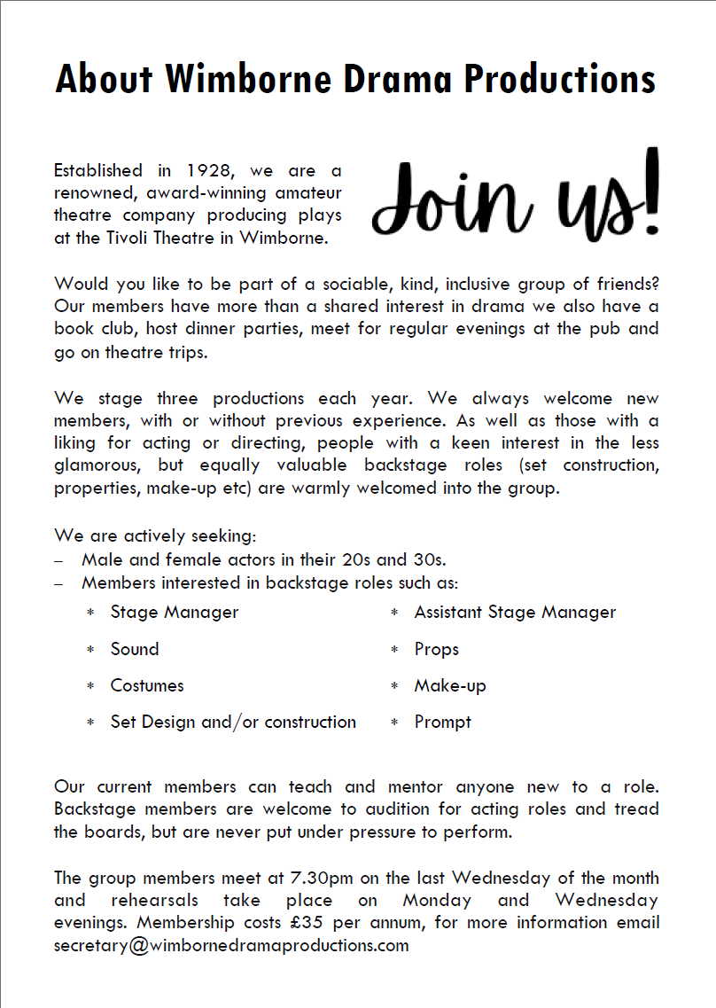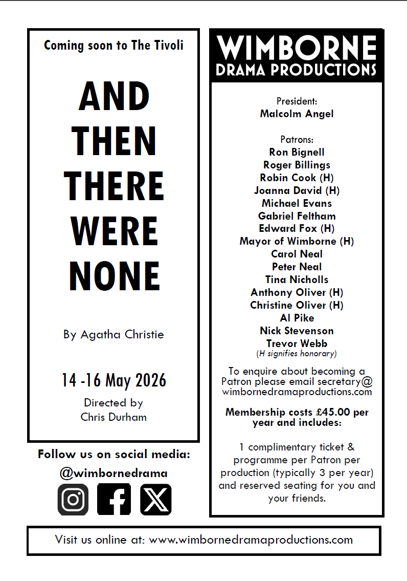 There are occasional dips in pace, with some slow cues, and scenes involving subplots such as Sasha’s romance, feel a little drawn out. However, these are minor issues in what is otherwise a thought-provoking tale, brought to life credibly by Wimborne Drama Productions.