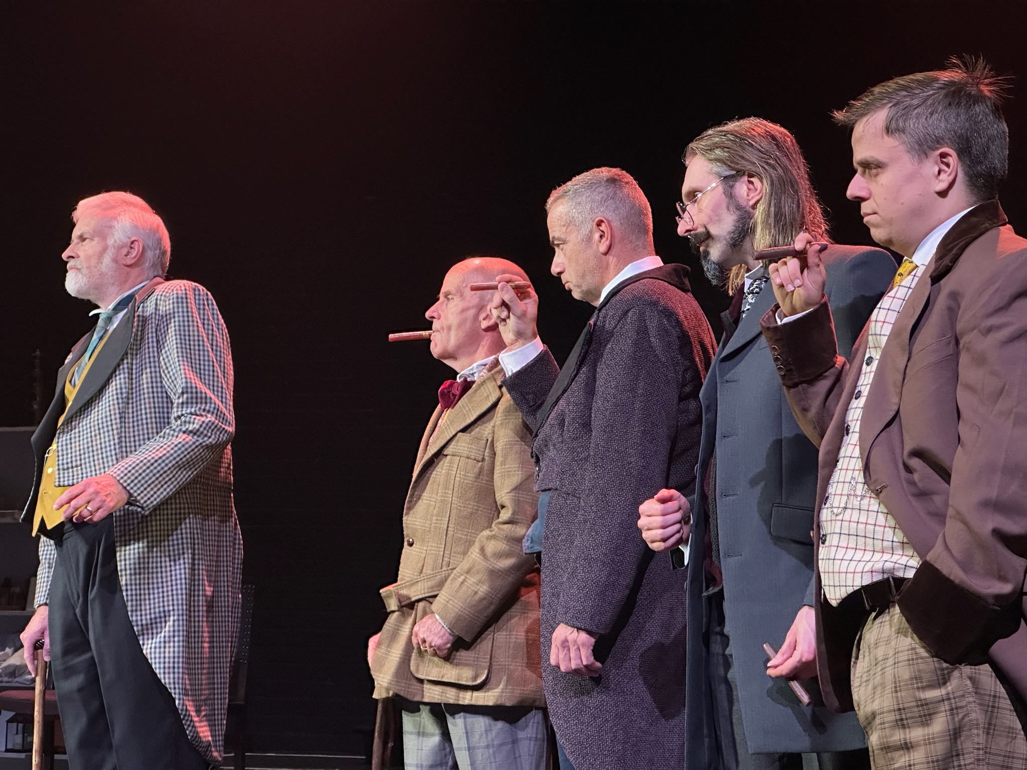 The play requires the ‘gentlemen’ — Colin Pile, Andy Scott, Calum Hearne, Richard Neal, Richard Scotson and David Beddard-Banks — to go through a wide gamut of emotions, which they all do with skill and split-second timing that is required in every part of this disturbing story.