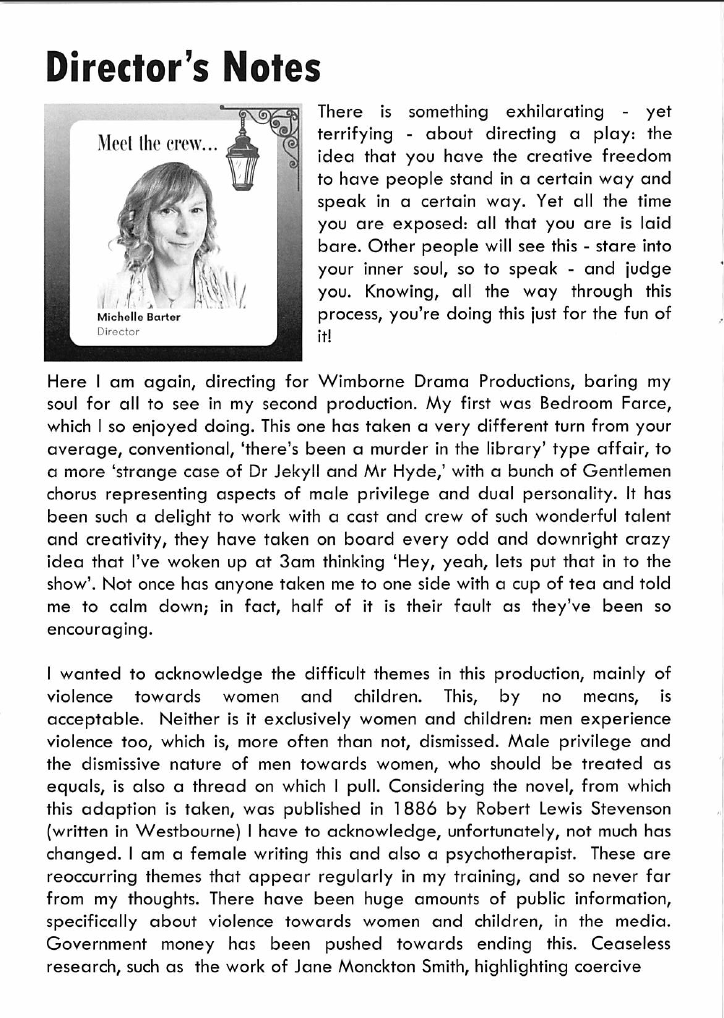 Michelle Barter took on a huge challenge to direct this complex play, and she must take a bow as must the creative team behind this production. Clearly many, many hours of rehearsal went into recreating the story from this gothic novel.