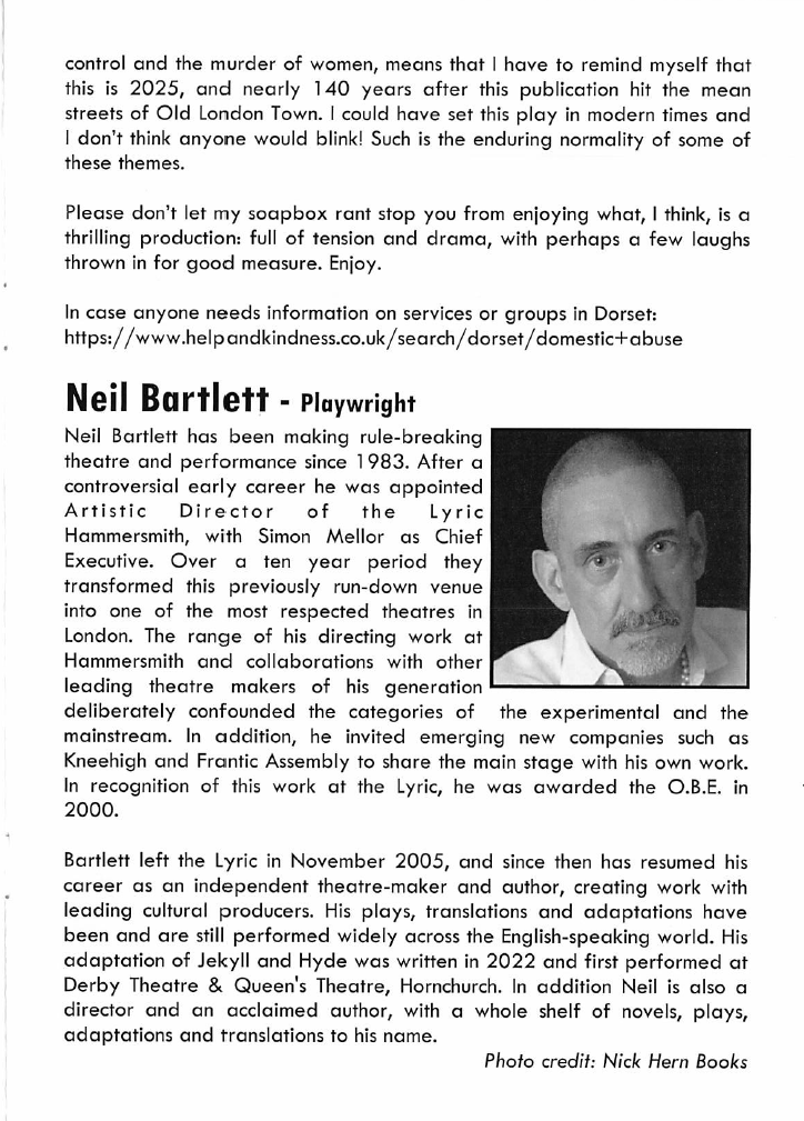 Sali Pike played investigator Dr Stevenson who linked the action, while Scarlet Dixon and Heather Birchenough both had dual roles. My only criticism is that Sali’s first speech is with her back to the audience which affects the clarity.