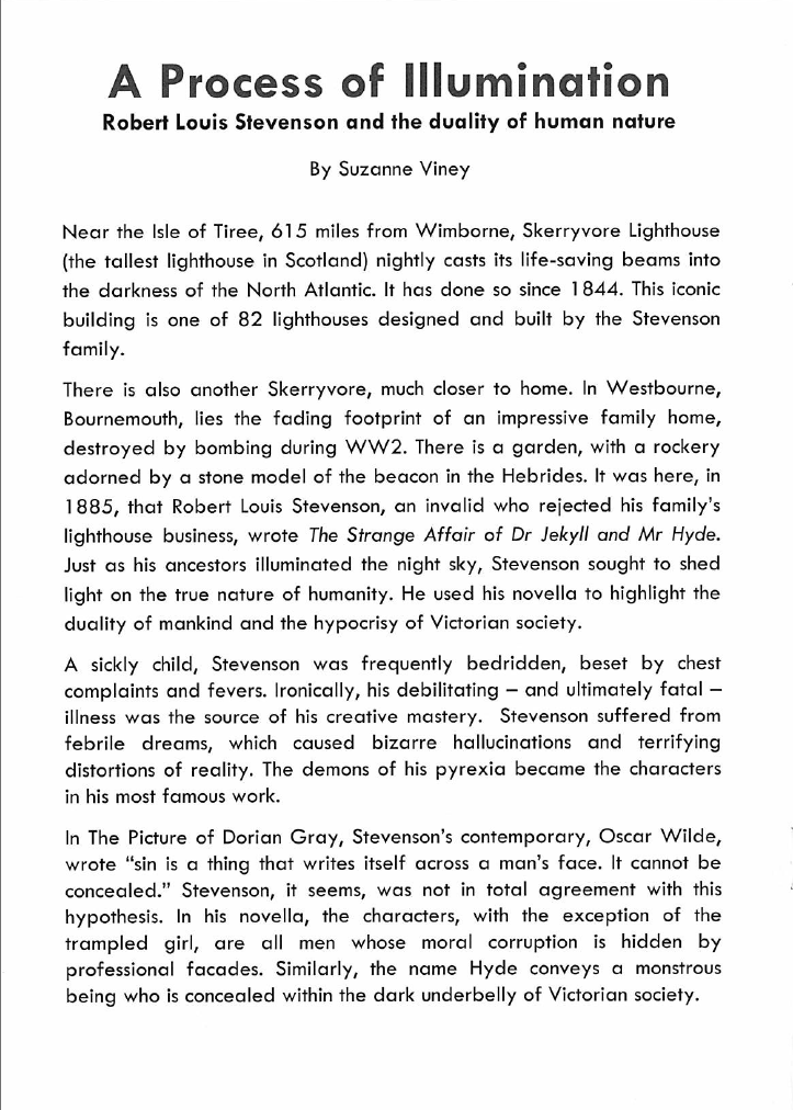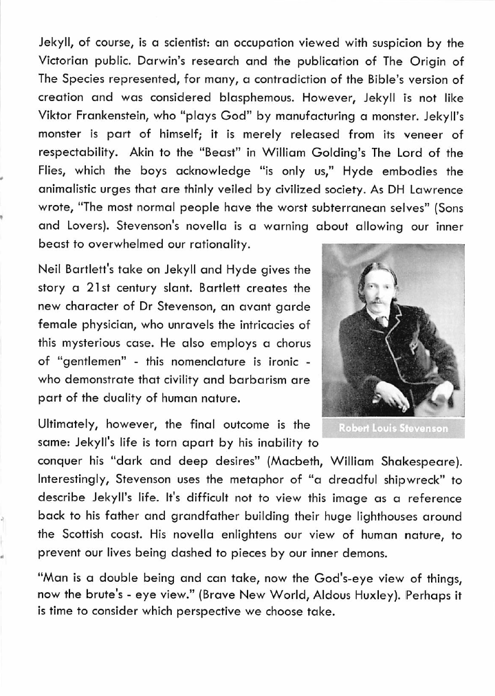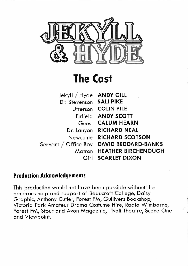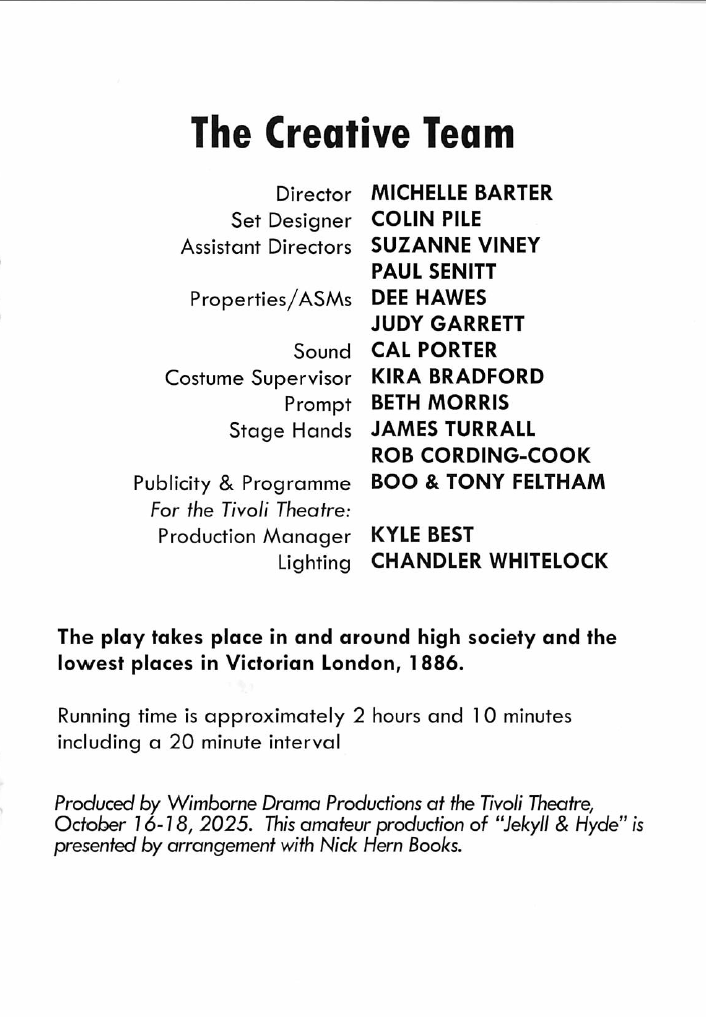 The story centres round Dr Henry Jekyll, who creates a potion which transforms him into the evil Mr Hyde. The play takes place in and around high society and the lowest places in Victorian London in 1886.