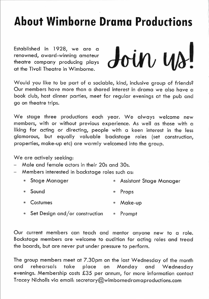 - Props / ASMs – Dee Hawes and Judy Garrett