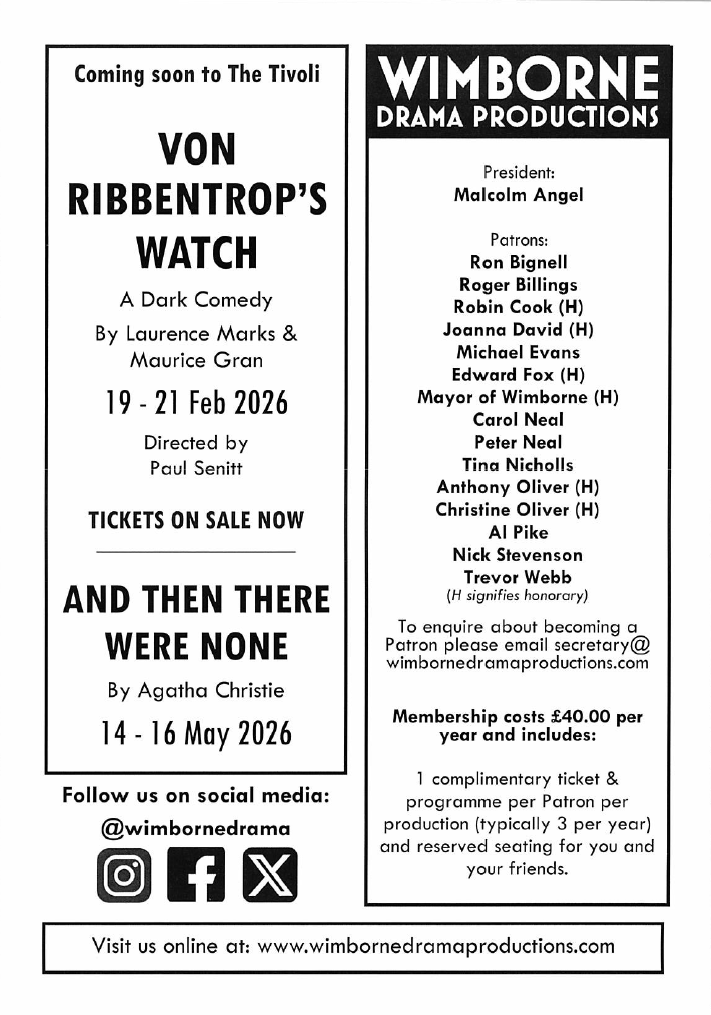 16th – 18th October 2025 @ The Tivoli Theatre, Wimborne